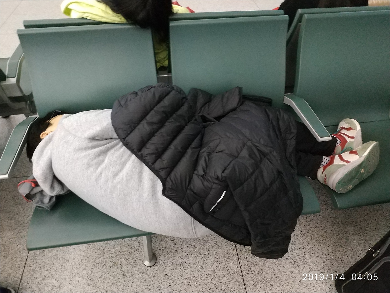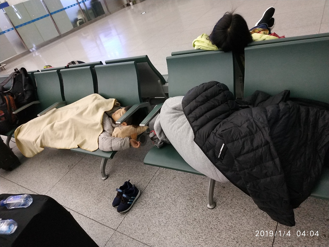 해외 여행의 묘비는 역시 공항 노숙 아니겠는가? 등을 쭉 뻗고 잘 수 있는 막내가 부럽~