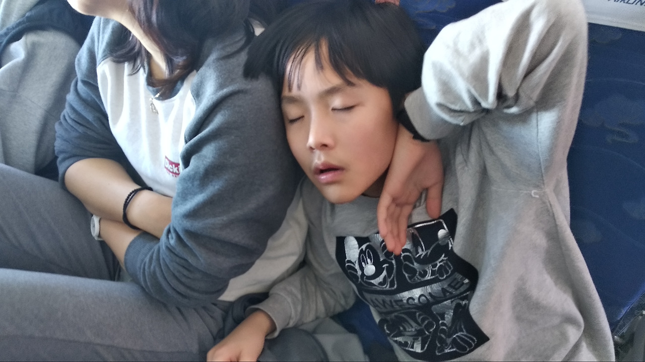 아는 사람은 알겠지만, 비행기가 고속버스보다 훨씬 좁고 불편한 교통수단이다. 이제 비행기에서 자려면 수도유도제가 필요한 나이가 되었다. 잘도 자는 너희들이 부럽다~^^