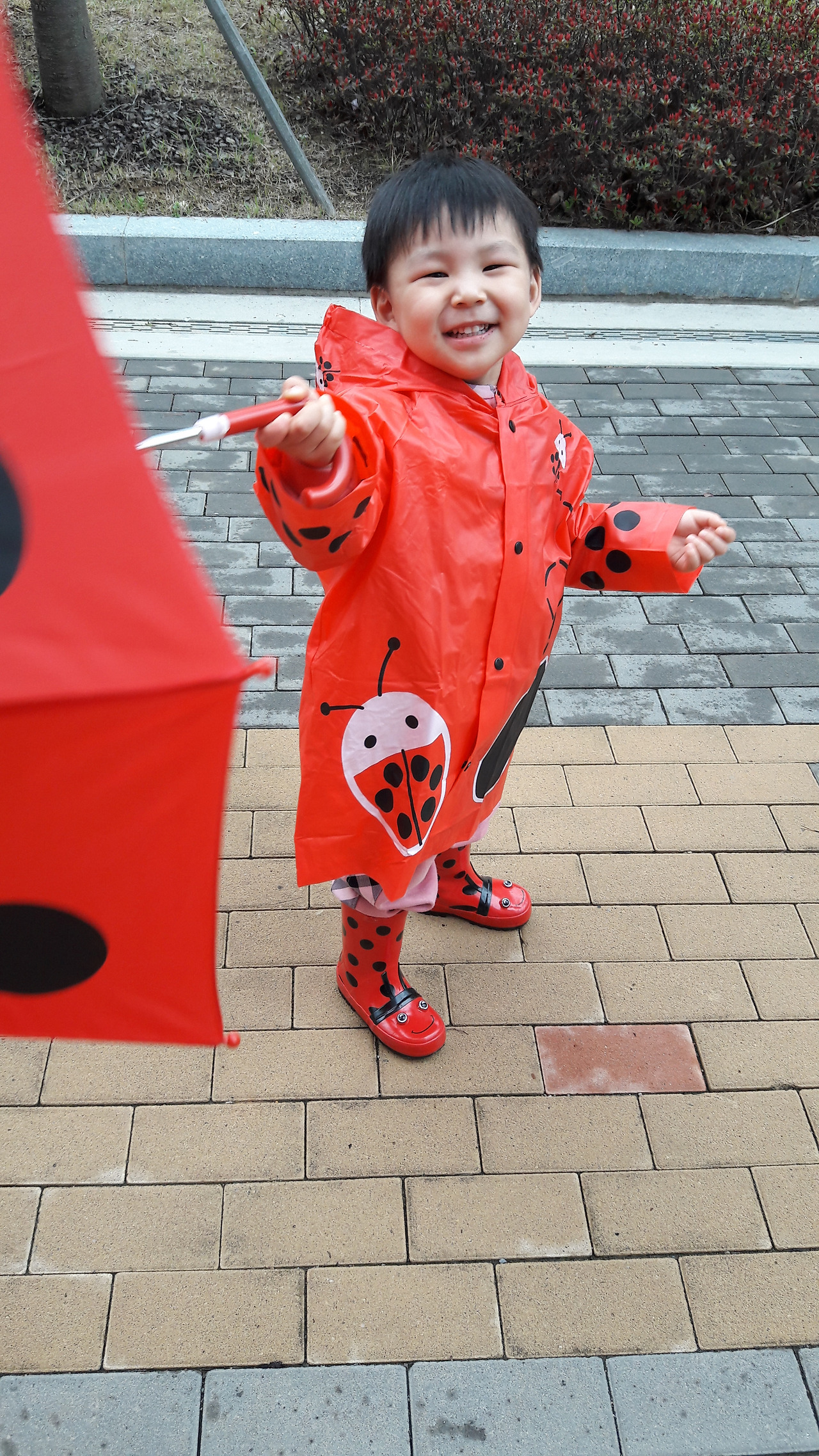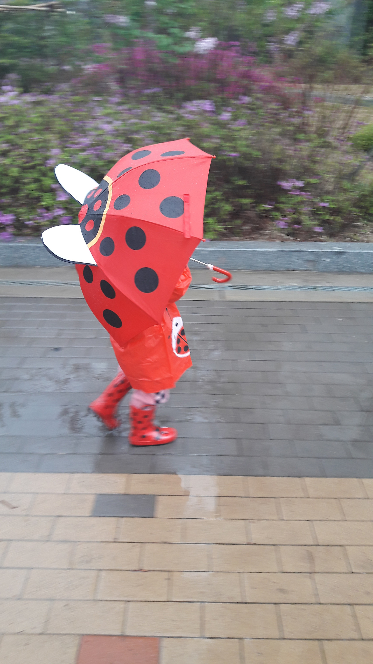 바람이 부는데도 신나게 웃으며 걷는 모습이