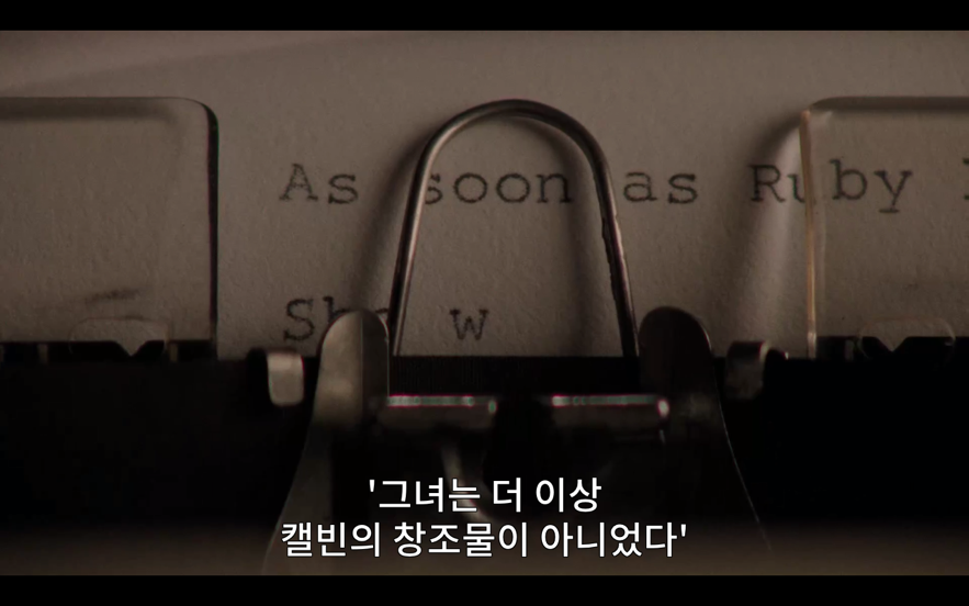 하지만 루비가 소설의 내용에서 예측할 수 없는 곳까지 다다르며 자신의 주관대로 행동하고, 캘빈이 원하던 모습에서 멀어지자, 그는 소설을 쓰는 것으로 다시 루비를 재단한다.