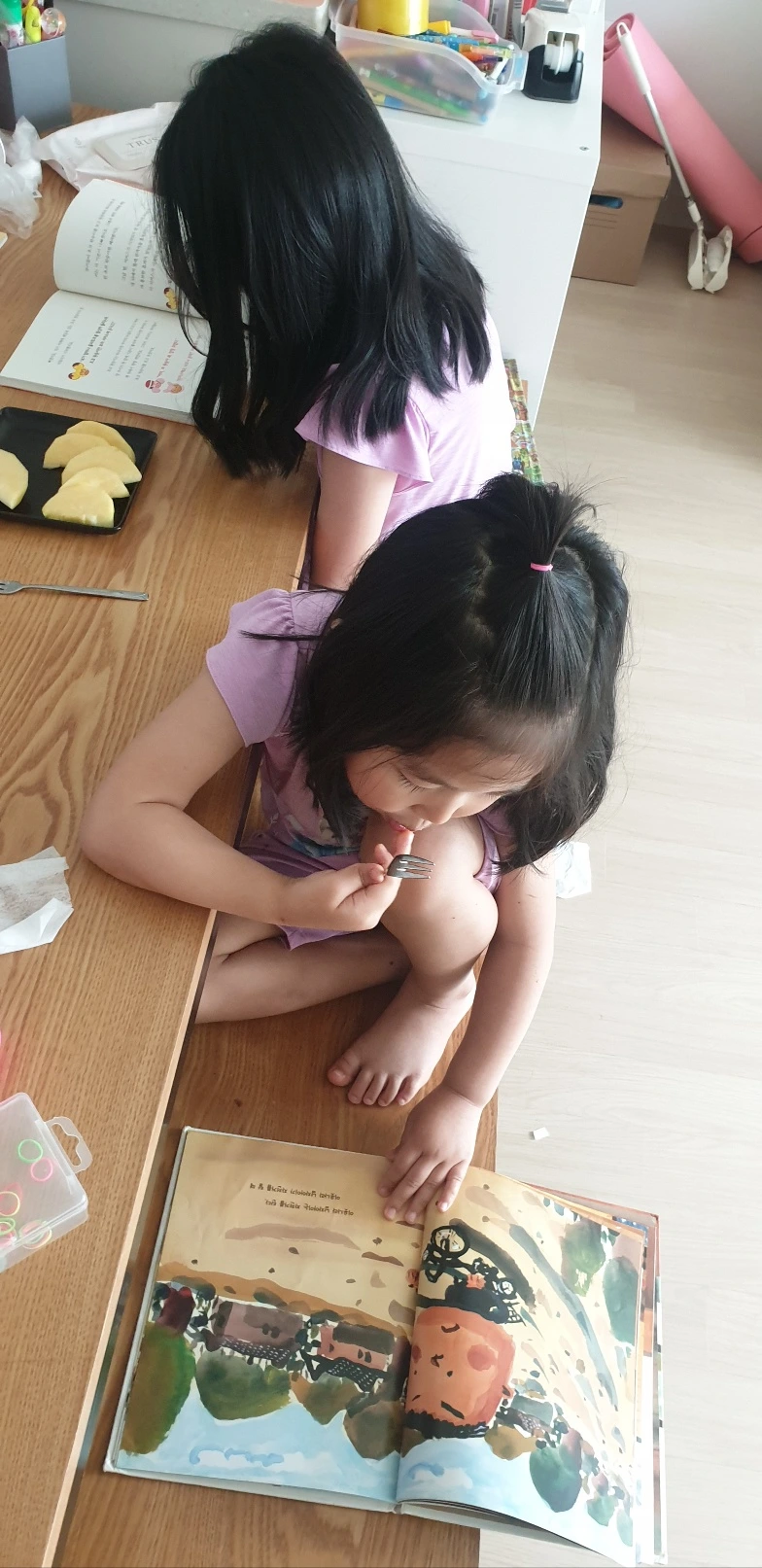 큰 아이는 신생아 때부터 다른 아이들에 비해 잠이 적었다. 산후 도우미 이모님도 큰 아이를 며칠 돌보시더니 "이렇게 잠이 없는 신생아는 처음 본다."라는 평을 남기셨다. 커갈수록 통잠(밤에 잠들어서 중간에 깨지 않고 아침까지 잠드는 것) 시간은 늘어났지만 여전히 또래보다 수면 시간이 적었다. 6시에 일어나 꿀잠 자는 나를 깨워 책을 읽어달라며 조르고 잠자기 전에는 2시간 가까이 책을 읽어줘도 눈빛은 여전히 초롱초롱 빛났다. 똑같은 책 2~3권을 대여섯 번씩 읽어주려니 지겨워서 몸이 베베 꼬였다. 어떤 날은 책 읽어주다가 너무 졸려 나도 모르게 눈이 감겼는데 아이가 눈을 뜨라며 손가락으로 내 눈을 벌려주었다. 이런 날이 반복되다 보니 내가 먼저 책육아라는 낭떠러지에서 떨어지기 직전이었다.