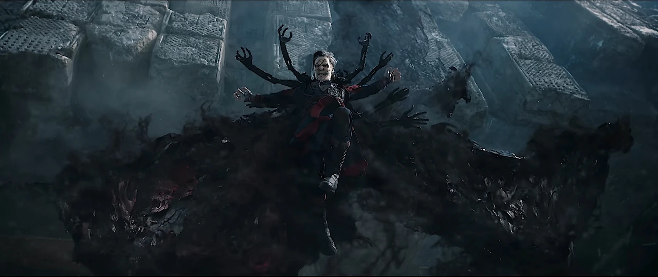 영화에서 '흑마법'이라는 개념을 본격적으로 다루기 시작하면서 '공포'적인 연출에 속도가 붙기 시작하는데, 감독은 그 명성에 걸맞게 흑마법(Black Magic)의 '마법'보다는 '어둠'에 집착한다. 현실에 존재하지 않는 초현실적 개념으로 공포감을 조성하는 것이 아니라, 인물의 사지가 괴이하게 뒤틀린다거나, 유령이나 괴물이 등장해서 관객을 놀라게 하는 전형적인 '호러(Horror)'의 방식으로 공포감을 조성하다 보니 역설적으로 그동안의 '닥터 스트레인지'의 톤 앤 매너가 파괴되고 말았다.