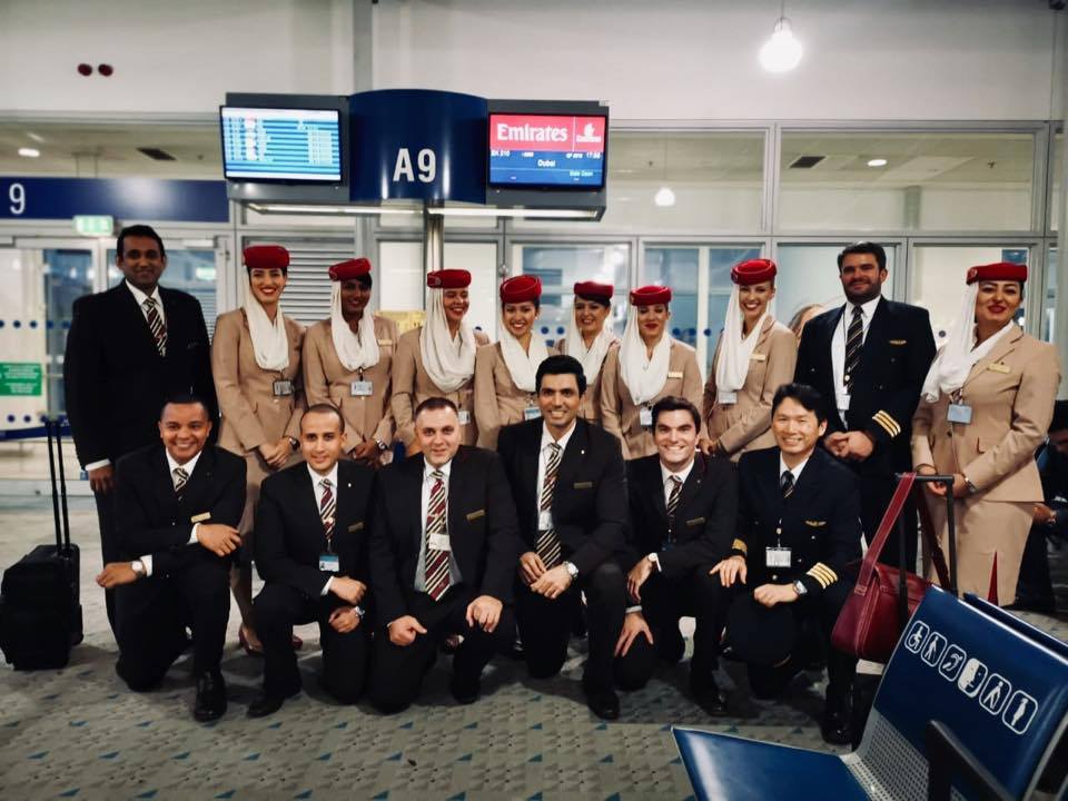 4박 5일간의 비행을 마치고 두바이로 돌아오는 비행을 마친 후 기장은 전 승무원에게 감사를 표한다.