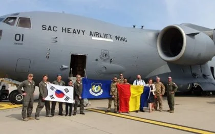 수송기의 조종사들과 관계자들이 루마니아 국기와 태극기를 나란히 위아래를 뒤집어 들고 환하게 웃으며 포즈를 취한 사진이 화제가 되었다.