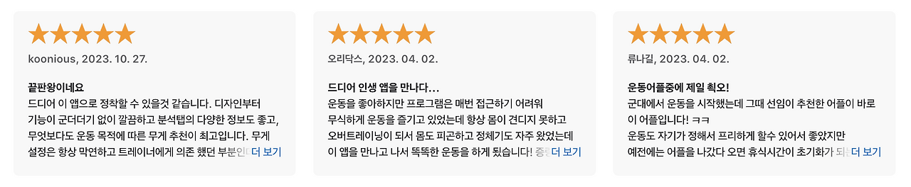 프로덕트를 만들어본 메이커라면 제품마다 유저 성향이 크게 다르다는 걸 알텐데, 짐워크로 운동한 걸 인스타에 공유해 주는 유저들을 보면 광기 가득한 헬스 매니아들만 모인 곳 같아서 흥미롭다. 자기관리를 열심히 하는 분들을 도와주는 기분이 들어서 뿌듯하기도 하다.