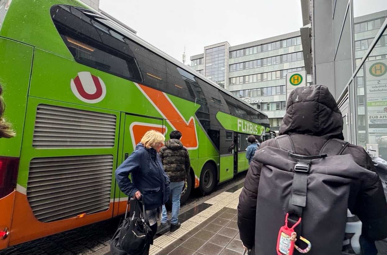 그때, 길 건너편에 플릭스 버스를 상징하는 연두색 버스가 서 있는 걸 발견했다.