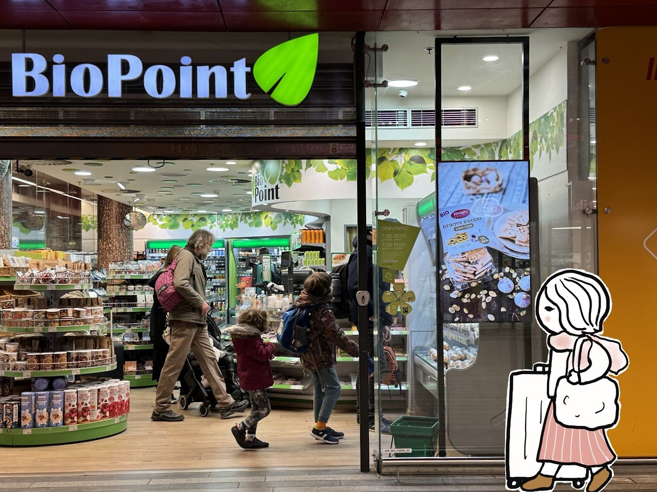 건너편에 건강 스낵 가게가 보인다. 유럽의 그 어디에서도 보지 못했던 체코 고유의 브랜드인 것 같다. 그렇지! 저런 데가 좋다.