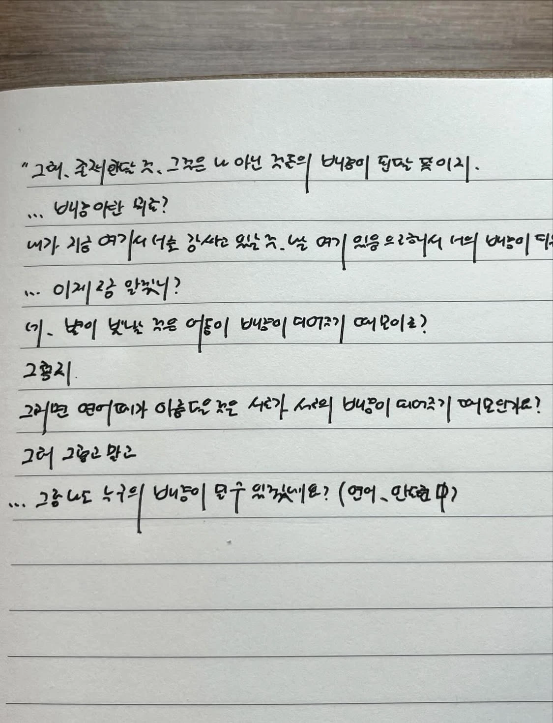 “내가 지금 여기서 너를 감싸고 있는 것. 나는 여기 있음으로 해서 너의 배경이 되는 거야.”