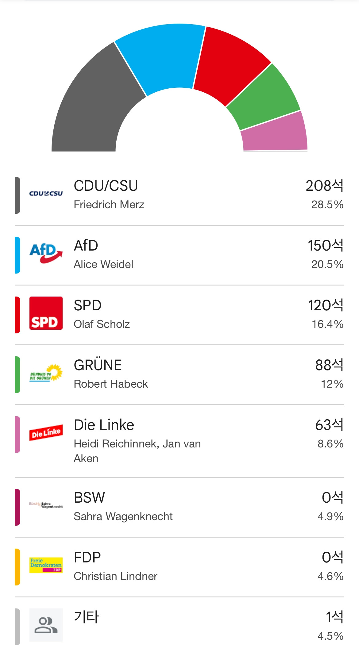 그리고 2025년 2월 23일 일요일 선거 결과