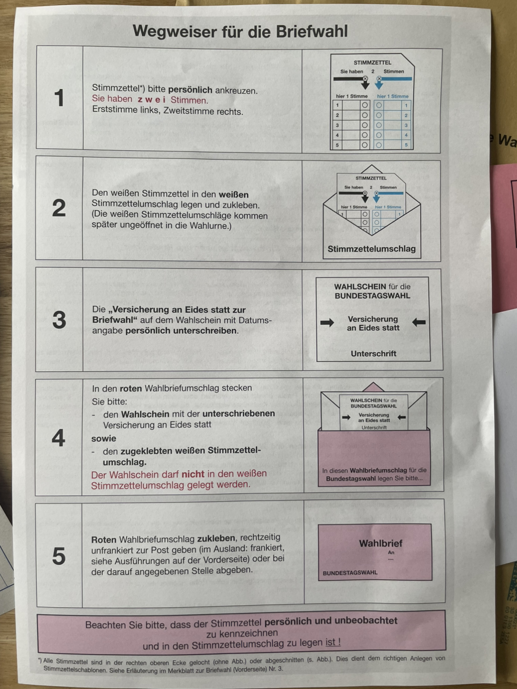 4) 모든 서류를 빨간색 봉투(Wahlbriefumschlag)에 넣어 밀봉