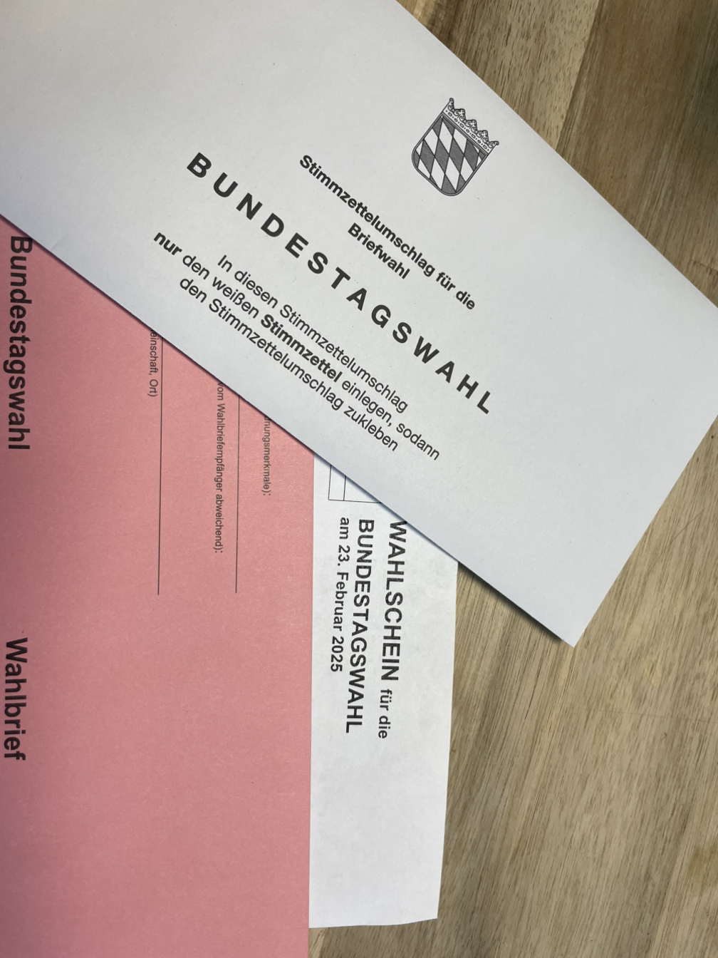 25년 2월 11일 우편으로 투표 증명서 (Wahlschein) 및 우편 투표를 위한 투표용지(Stimmtettel)가 도착했다.
