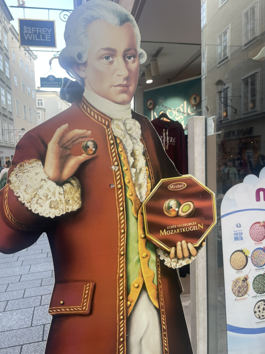 잘츠부르크의 대표 초콜릿으로, 피스타치오 마지팬과 프랄린이 들어 있고 겉에 다크 초콜릿이 코팅되어 있다. 오리지널 모차르트 쿠겔은 퓌르스트(Fürst)에서 판매하는 버전이다.