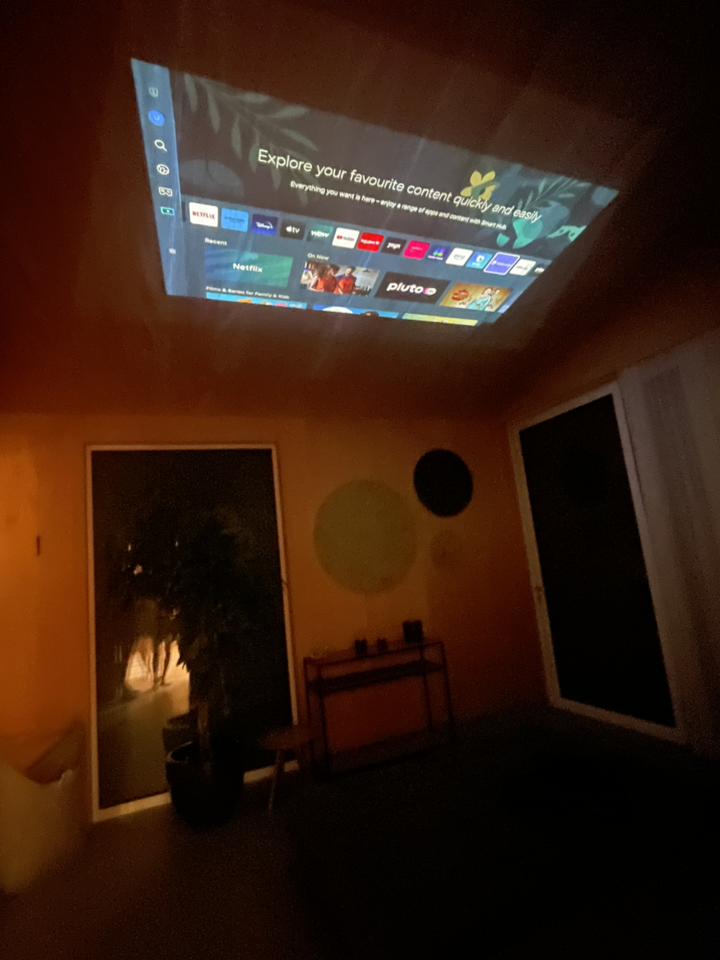 사우나 실 넓은 쇼파에서 우리가 직접 가져온 삼성 프리스타일 빔 프로젝터로 영화도 보고 좋았다. 가정용 빔 프로젝터는 작고 가벼운 휴대용이 최고인 것 같다. 처음에 무겁고 큰걸 구매했다가 너무 불편해서 곧바로 반품했었다. 아이들 방에서 친구들 오면 같이 보게 하고, 가족끼리 가족 영화 보고 싶을 때는 거실 한 벽에 띄우고 다 같이 보기도 하고, 이렇게 휴양 여행 올 때는 티비 보다 이런 휴대용 빔 프로젝터로 보면 더 분위기도 나고 좋다. 그래서 대만족.