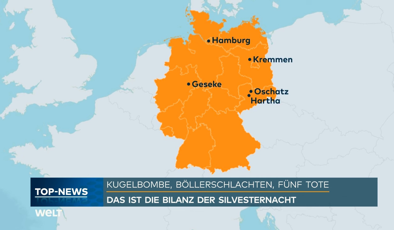 • 브란덴부르크: 21세 남성이 불법 사용된 ’구체 폭탄(Kugelbombe)’으로 사망.