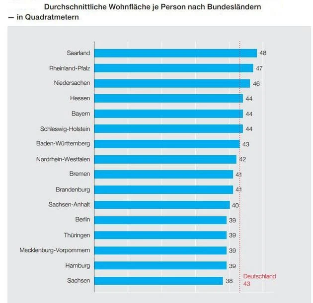그렇다면 독일인들은 1인당 몇 평 정도가 삶의 질을 유지하면서 살아갈 수 있는 최소 평형이라고 생각하고 있을까?