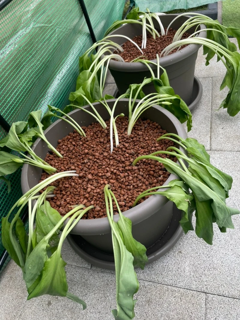이러한 명이의 습성을 미리 공부했던 나는 작년 여름과 추운 겨울을 작은 비닐하우스 안에 그대로 두어 보관했다. 그리고 이듬해인 2024년 봄…