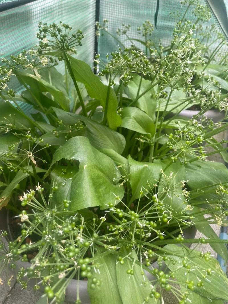 5월 중순이 되어 날씨가 더워지자 명이는 꽃이 만개했다가 금세 씨앗을 만들었다. 명이는 주로 그늘에서 자라기 때문에 직사광선을 피하고 그늘진 곳에 두어야 더 오래 신선하게 키울 수 있다.