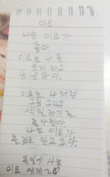 늘 대답은 “이모네를 다시 만나고 싶어”