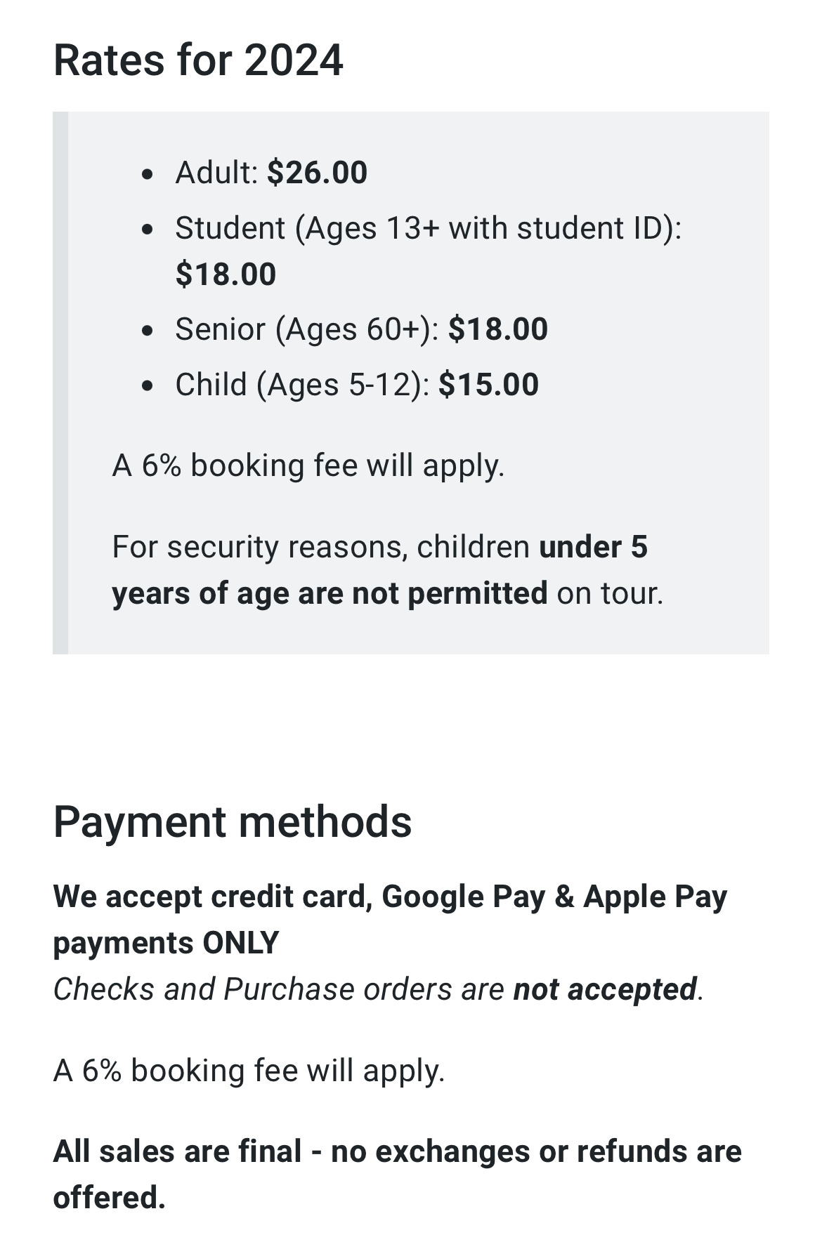 보안 검사를 위해 투어 시작 60분 전에 도착해야 한다.