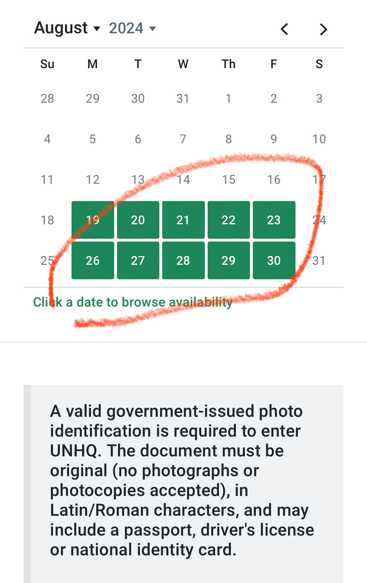 유엔 본부를 방문하는 모든 방문객은 유엔 건물에 입장하기 위해 유엔 보안 패스가 필요하다. 이 보안 패스는 방문자 체크인 사무실에서 받아야 한다.