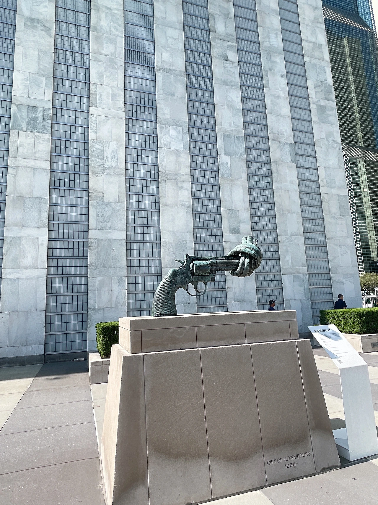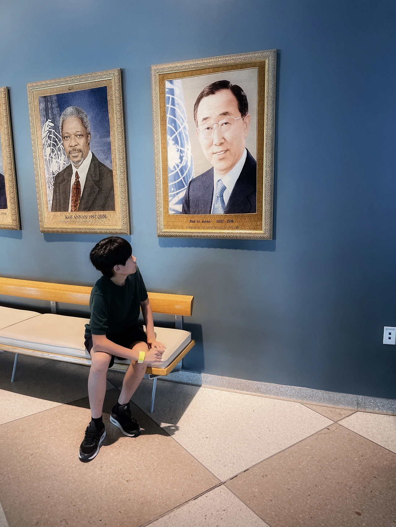 미국 뉴욕 여행에서 내가 아이들과 가보고 싶었던 장소 중의 하나는 바로 국제연합(유엔본부 UN)이었다. 국제 평화와 안전을 보장하고, 국제 협력 증진, 인권 개선 등의 활동을 통해 세계의 번영을 추구하는 국제기구인 유엔은 우리가 사는 독일 이웃나라인 스위스 제네바에도 있고, 오스트리아 빈, 케냐의 나이로비에도 있다. 국제법, 국제적 안보 공조, 경제 개발 협력 증진, 인권 개선으로 세계 평화를 유지하기 위한 목적으로 출범한 국제연합의 본사는 바로 뉴욕(New York)이다.