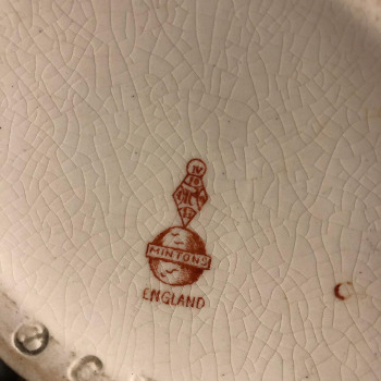 민튼 역시 'Haddon Hall' 처럼 스테디한 패턴의 경우에는 아예 로고 사이에 여백을 주어 패턴명을 새기기도 합니다. 표에 있는 백스탬프와 조금 다른 모양이라고 해서 가품이 아닐까, 하는 의혹을 품는 분도 계십니다. 어디서든 백스탬프를 먼저 확인하고 기억하는 습관을 들이면 어느 부분에서 변형이 되었는지, 나중에는 그야말로 '척보면 알게' 됩니다. 이 티팟은 1870년대에 만들어진 것으로 추정됩니다. 150년 되었지요. 애지중지할 만합니다.