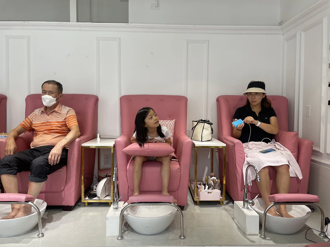 호찌민물가가 다 싸긴 하지만 그중에서도 네일숍 가격이 은혜롭다. 한국에서는 4-5만 원 하는 젤 네일이 여기서는 만원~만오천 원 시세. 평소에 한국에서도 잘 안 하는 네일이지만, 왜인지 이곳에서는 안 하면 손해인 것 같아 하게 되는 그런 호찌민 관광상품 중 하나. 우리 엄마와 내 딸을 위해 선택한 코스였다.