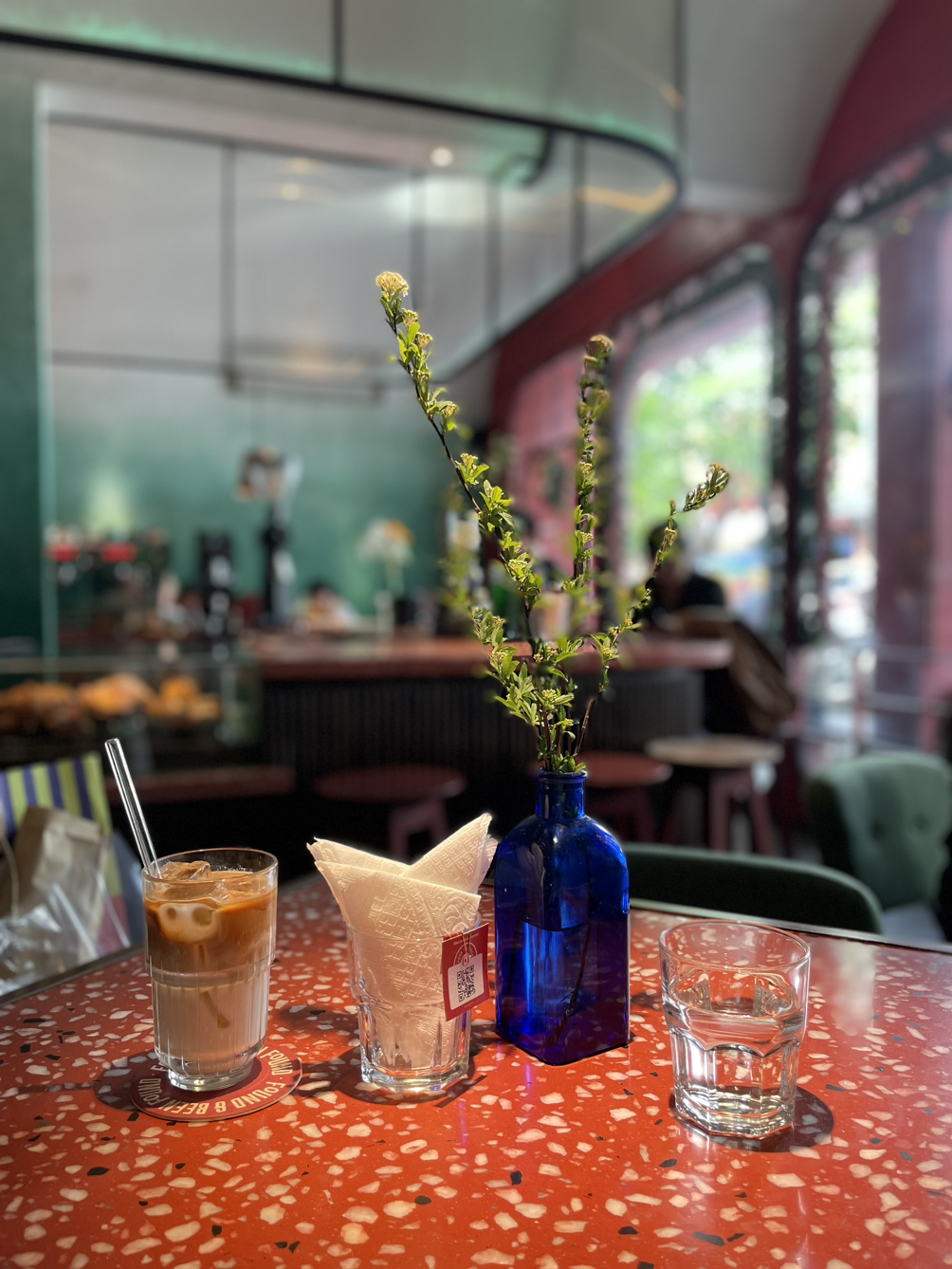 혼자서 옷사고, 밥 먹고, 쇼핑하고 보니 시간이 훌쩍 금방 지난다. 올케가 '오키오'라는 카페를 추천하길래 "오키요" 라는 아재같은 대답을 한 후 고민없이 그곳으로 향했다. 에어컨바람을 주문하고 , 커피를 얻어마셨다. 혼자 왔지만 맞은편 의자에 오늘 산 여러 쇼핑백을 친구 삼아 올려두고 잠시 둘러보며 지나가는 사람들 구경, 맛있어 보이는 빵오쇼콜라구경, 옆에서 일하는 외국인 구경을 해본다.