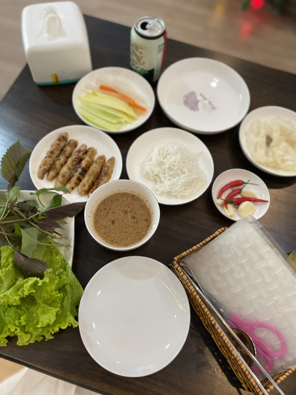 드디어 월남쌈을 먹게 되었다.(현지어로는 남 르엉이라고 한다.) 1인분을 주문했는데, 뭔가가 다양하게 나온다. 내가 아는 월남쌈과 같은 듯 다른듯한 이 구성. 향신채가 많다는 것, 소시지가 들어간다는 것 외에도 우리처럼 라이스페이퍼를 물에 적시지 않는다는 게 다른듯하다. 내가 유튜브를 보면서 어리바리하며 쌈을 말고 있으니 주인아주머니가 와서 친절히 시범을 보이며 직접 싸주셨다. 나한테 묻지도 않고 향신채를 많이 넣으셨지만, 입맛만큼은 세계평화주의인 나는 또 이 동남아맛을 너무 사랑하지요. 내가 아는 월남쌈은 진짜 한국화 된 보급형이었다. 베트남사람들이 한국서 월남쌈을 먹으면 뭐라 할까 궁금해진다. 마치 내가 어디 태국 크루즈 뷔페에서 먹는 김치를 먹으면서 이게 김치냐, 하던 그런 기분일테지..