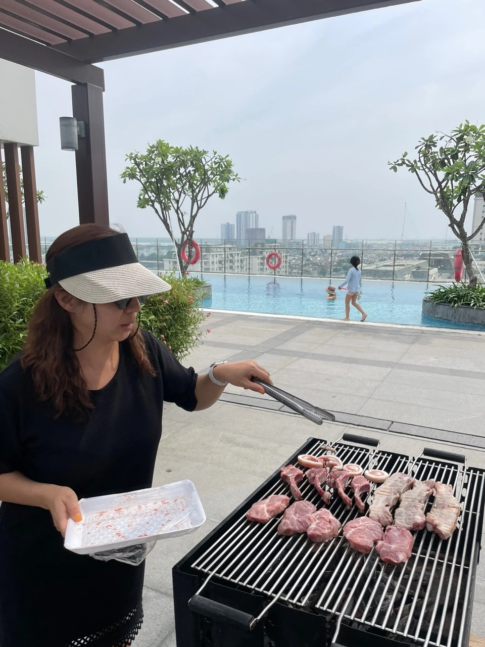남동생네 아파트 수영장에는 바비큐 시설이 있는데, 미리 예약하면 사용할 수가 있다고 해서 온 가족 첫 식사는 수영장에서 하기로 했다. (내가 아는바로는 호찌민에 수영장 있는 아파트에 대부분은 이런 바비큐시설이 있고 이용이 가능하다고 한다) 인원도 많고 입맛도 다른 이 모든 인원이 한꺼번에 갈만한 식당을 찾기도 어렵거니와 동남아 기분 느끼기에 수영장만 한 게 어디 있겠느냐며.