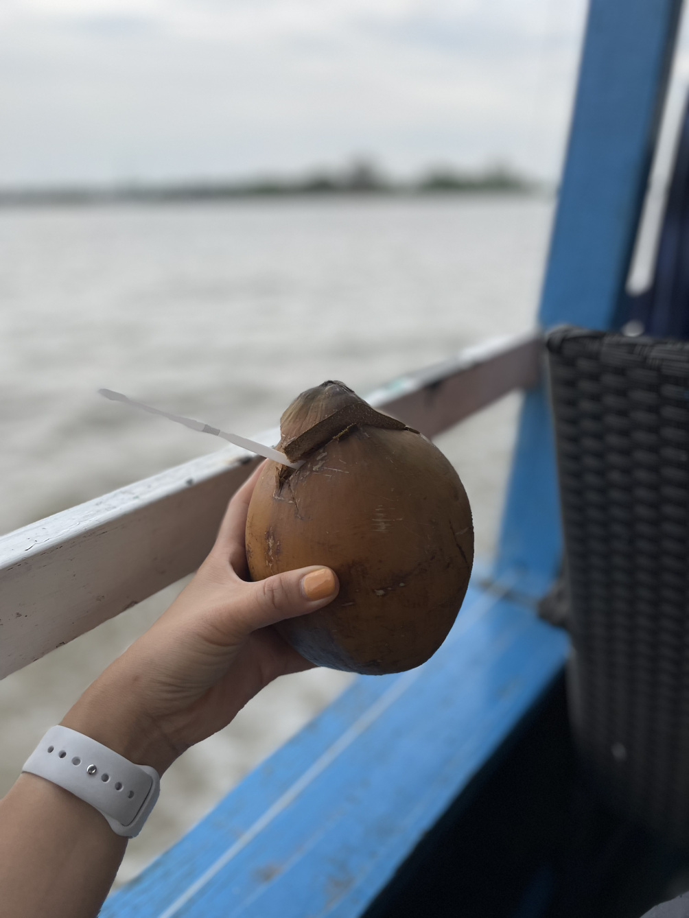 그렇게 메콩강 투어의 여정은 다 끝이 나고 왔던 구간으로 다시 뚝뚝이와 스몰보트, 빅보트를 타고 육지로 이동한다. 아따마 배 원 없이 탄다. 빅보트 타는 구간에서는 코코넛한통을 주시길래 강구경하며 코코넛도 한모금마시는데. 한강 지나며 스벅 마시는 건 갱장히 도시적이고 세련된 것이었다는 걸 알게 되었다. 통통배 타며 습기에 꼬불거리는 앞머리를 만지작 거리는 꾀죄죄한 나는.. 이제 이곳이 더 어울리는 것만 같아..