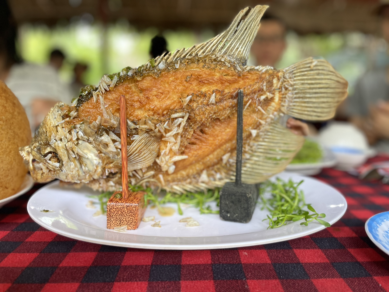 그렇게 생각보다 짧은 메콩강 보트투어가 끝나면 그 섬안에 있는 식당에서 점심을 제공한다. 우리는 그날 같은 투어에 참여한 영어를 쓰는 동양인 가족들과 조인해서 같이 식사를 했는데 미국에 사는 베트남가족 같기도 하고 그중에 홍콩 쪽도 포함되어 있는 것 같기도 하고- 여하튼 그중에 미국인(백인) 남편으로 추정되는 한 남자가 있었는데, 처음부터 시종일관 어찌나 지루하단 표정인지, 게다가 음식도 맘에 들지 않는지.. 뾰로통한 표정으로 먹는 둥 마는 둥 하며 핸드폰만 보는데.. 우리 어디 워터파크 가면 항상 영혼 없이 쫓아다니는 아버님들 생각이 나더라. 아, ㅎㅎ 이런 건 세계공용이구나. 처가댁 가족여행. 남자들의 노잼구간ㅋ