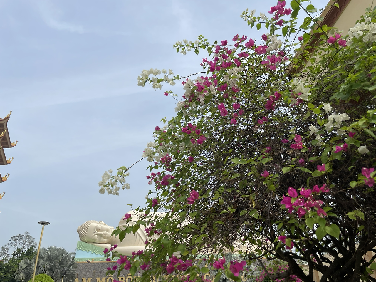 사원에 관심이 없는 우리는, 근처의 꽃구경을 하며 사복사복 걸었고, 넉살 좋게 낮잠 자는 동자스님 동상을 구경하며 1차 투어 스폿 클리어. 여행자 아니고 관광객스럽게 사진이나 대충 몇 장 찍으면 된다.