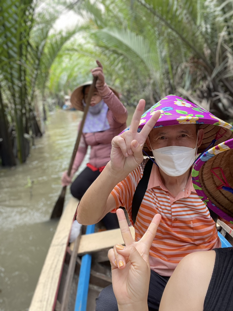 그래도 베트남에 왔는데, 무언가 "베트남"적인 투어가 필요하지 않을까 싶어 "메콩강투어"를 가기로 했다. 호찌민을 검색하면 항상 나오던 그 장면, 꾸정.. 아니 메콩강 위에서 배를 타고 베트남전통모자를 쓴 모습. 베트남에 왔으니 엄마아빠에게도 그런 장면 하나 남겨줘야지-