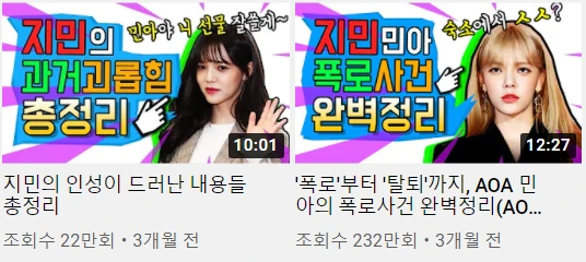 연예계나 유명인들의 이슈에 대해 자극적인 콘텐츠를 만들어 돈벌이를 한다 (출처: 유튜브)