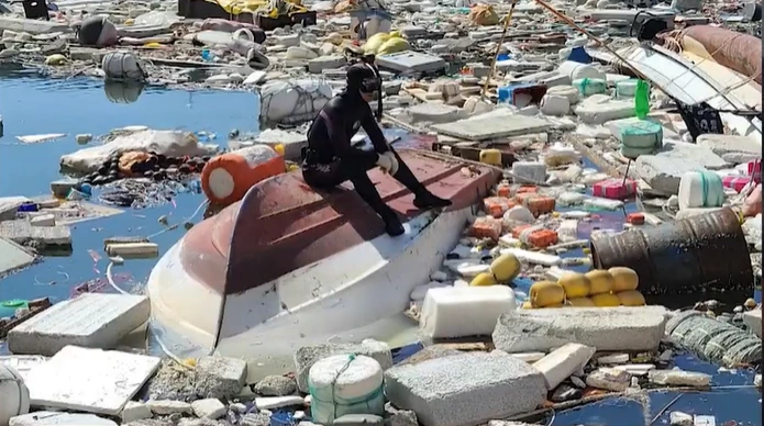 물속 시야도 뿌옇게 잘 나오지 않았을 것이다. 하지만 그는 거칠게 없었다. 몇 분 뒤 그는 두 손에 낚시 도구며 항해 장비들을 들고 수면 위로 올라왔다.