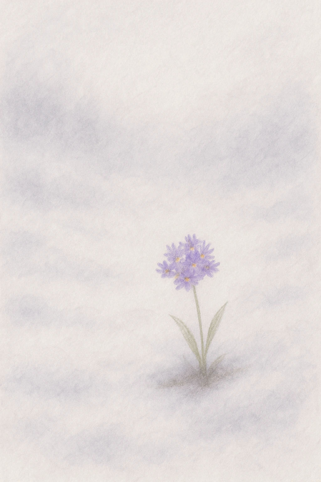 그 틈에서 조용히 피어오르기 시작한 여린 보랏빛.
