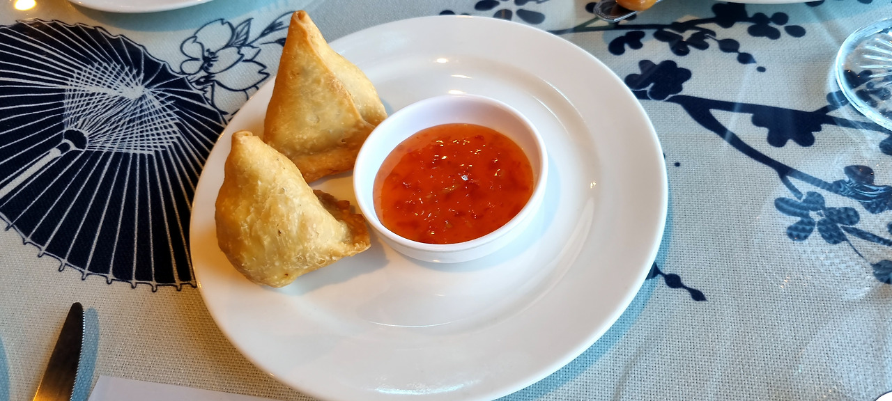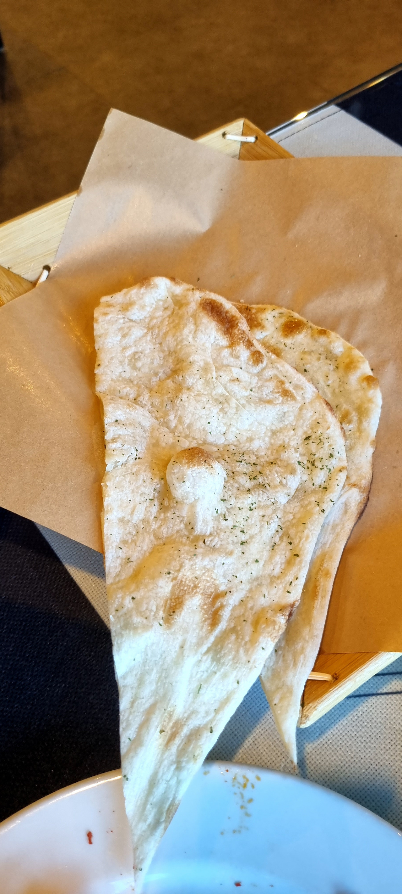 일단 식전코스로 인도의 튀긴 만두라고 할 수 있는 사모사를 먼저 주문했고 뒤이어 아이들 취향에 맞게 부드러운 버터, 치킨티카 (치킨 티카는 닭을 향신료에 재워서 인도식 화덕에 구운 음식)가 들어간 치킨 커리. 그리고 여기에 곁들여 먹을 갈릭 난. 그리고 탄두리 치킨을 주문했다. 음료로는 아이들을 위해서는 딸기 라씨, 어른들을 위해서는 마살라 짜이를 주문했다. 솔직히 치킨 커리와 난, 탄두리 치킨은 예전에 먹어본 적이 있지만 그 나머지 음식은 모두 처음 먹어본 메뉴였다.