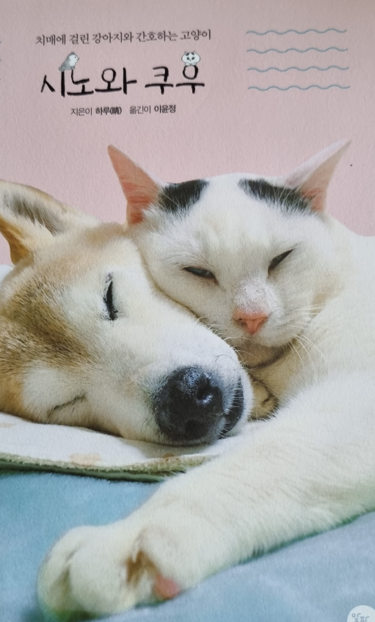 <시노와 쿠우>를 읽었다. 이 책은 치매에 걸린 강아지와 간호하는 고양이의 이야기다. 시노는 나이가 많은 암컷 개고 쿠우는 어린 수컷 길고양이 출신이다. 둘 다 길거리 출신으로, 어쩌다 정이 들은 이 개와 고양이는 친구사이가 되었다. 시노가 아파서 몸을 못 가누자 쿠우는 자기 몸으로 지탱해준다. 그리고 시노 옆에서 가끔 밥을 얻어먹는다. 시노가 죽고 쿠우는 꽤 오랫동안 그리워했다. 그리고 고양이들의 세계로 돌아갔다. 예전보다 훨씬 부드러워진 태도로. 찬바람이 불기 시작할 때 담요를 덮는 것 같은 느낌의 책. 표지에서 서로의 몸으로 이불이 되어주고 베게가 되어주는 개와 고양이. 인상적인 사진으로 가득한 이 책이 오늘을 밝혀준다.