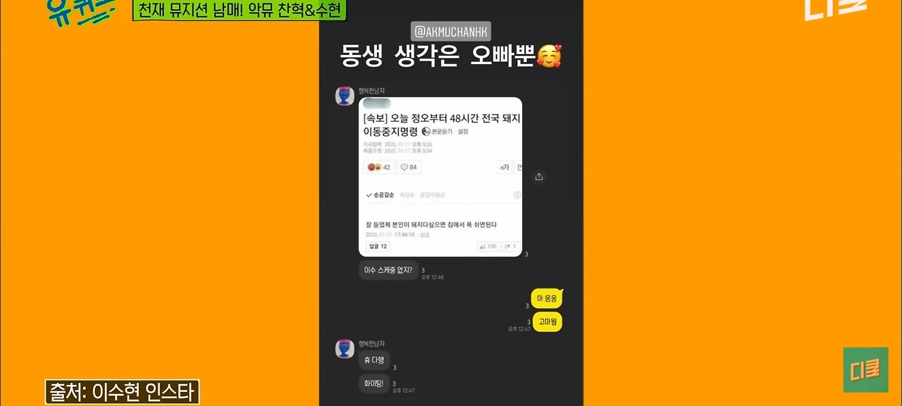 유퀴즈에 나온 두 남매의 현실문자..
