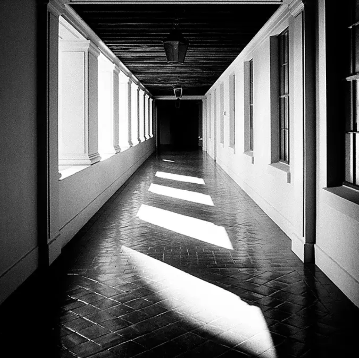 원근법은 3차원 공간을 2차원 평면에 표현할 때, 실제 눈으로 보는 것처럼 거리감을 느끼도록 하는 회화 기법이다. 아래 사진처럼 복도를 바라보면 내 시선에서 멀어질수록 복도와 양쪽의 벽이 결국 하나의 점(소실점)으로 모인다. 이러한 소실점을 그림에 응용하여 멀고 가까움과 깊이를 주는 화법이다.