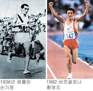 한국인으로서 최초로 우승한 손기정과 태극기를 달고 최초로 우승한 '몬주익의 영웅' 황영조