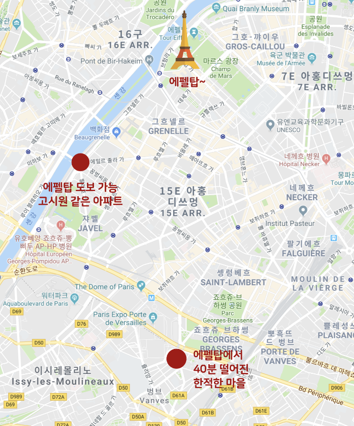 여기에 있으면 내가 별로 행복하지 않을 것 같았다. 그래서 끊어놓은 파리 항공권 취소하고, 다른 곳을 알아보던 중에 파리 외곽의 방브라는 마을이 내 눈에 들어왔다. 그리고 아직 미련을 버리지 못한 에펠뷰 아파트.