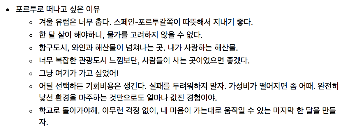 에버노트를 열고, 포르투로 떠나고 싶은 솔직한 이유를 하나씩 적어 내려갔다.