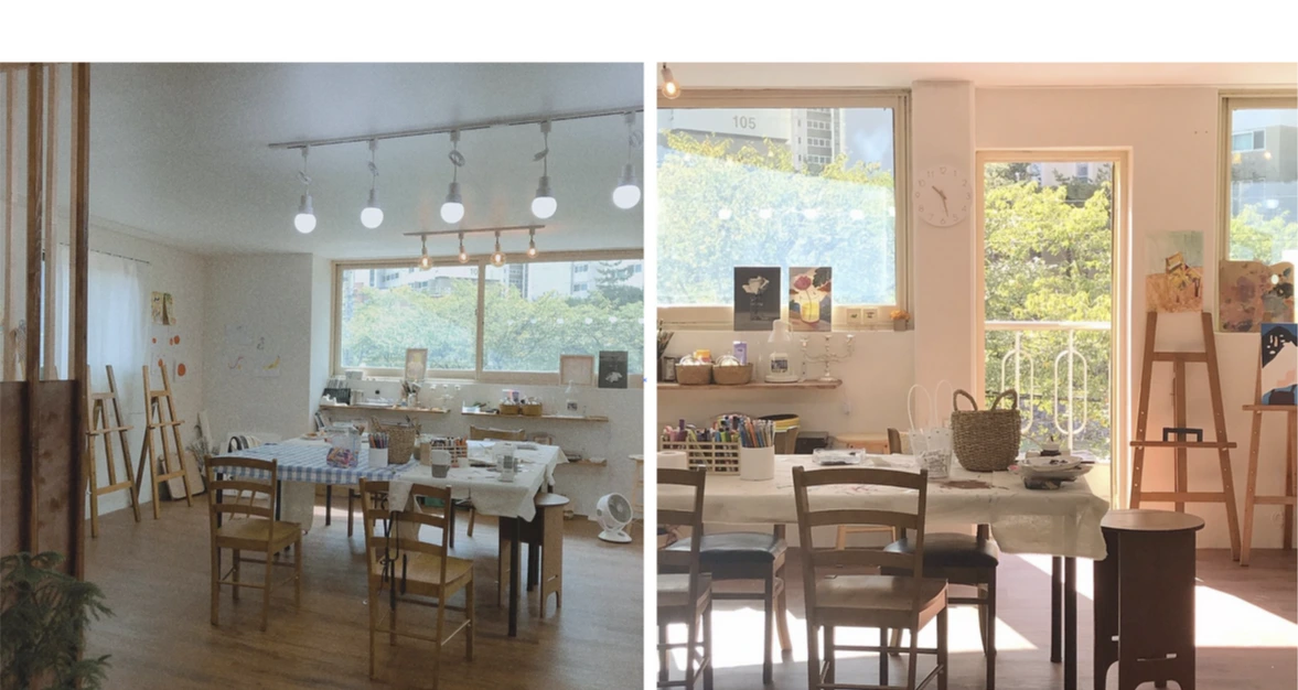 그렇게 어글리 빈센트라는 이름으로 반년 정도 지난 지금 학원은 엄청나게 잘되어서 학원생이 넘쳐나는 정도는 아니지만, 차근차근 원생도 늘어가고 이름을 알려가는 중이다. 그리고 낮에는 아이들 수업이 있고 저녁에는 어른들을 위한 수업이 있는데, 주변 친구들을 많이 영입해서 저녁 수업에 같은 학교 동창들이 많이 다니고 있는 중이다..! 종종 학원 계정 인스타그램 사진에서 친구들을 찾아보는 재미가 있다. 친구들이 미술수업을 설레 하면서 기대하는 모습이 참 귀엽기도 하고 함께 고민한 공간에서 집중해서 그림을 그리는 모습을 보니 뿌듯하기도 했다..! 언니는 지금도 꾸준히 인스타그램에 수업사진, 아이들 사진을 올리고 있고 열심히 수업을 하고 있는데