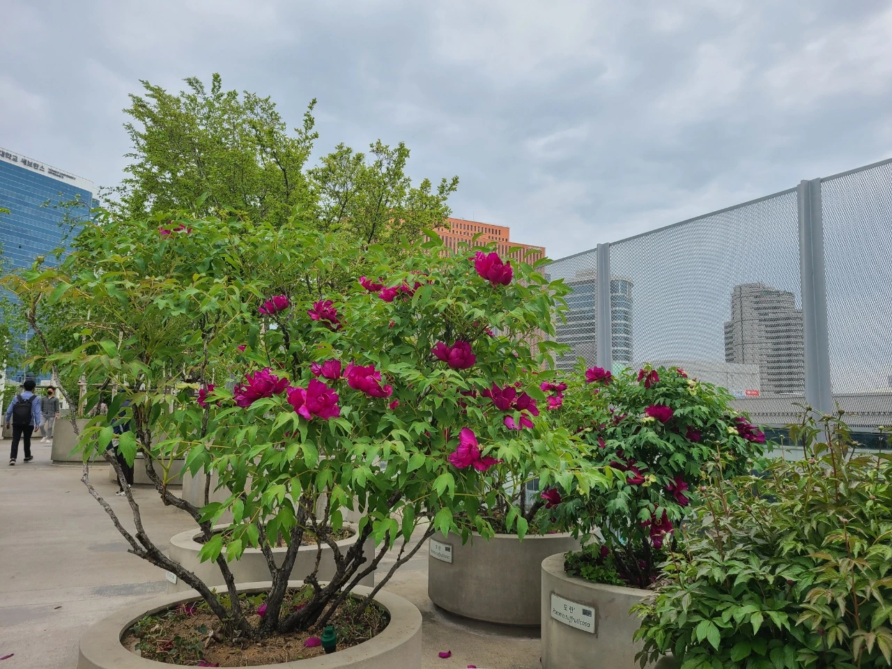 서울로 7017 고가의 모란 만리동 광장에서 남대문 가는길 중간즈음에 모란과 작약을 모아서 전시해 두었다