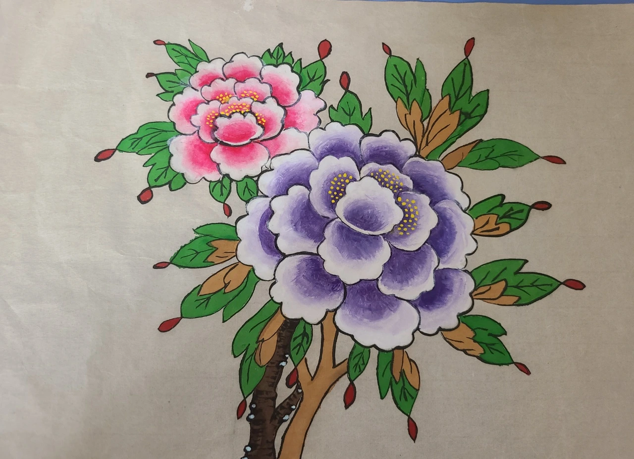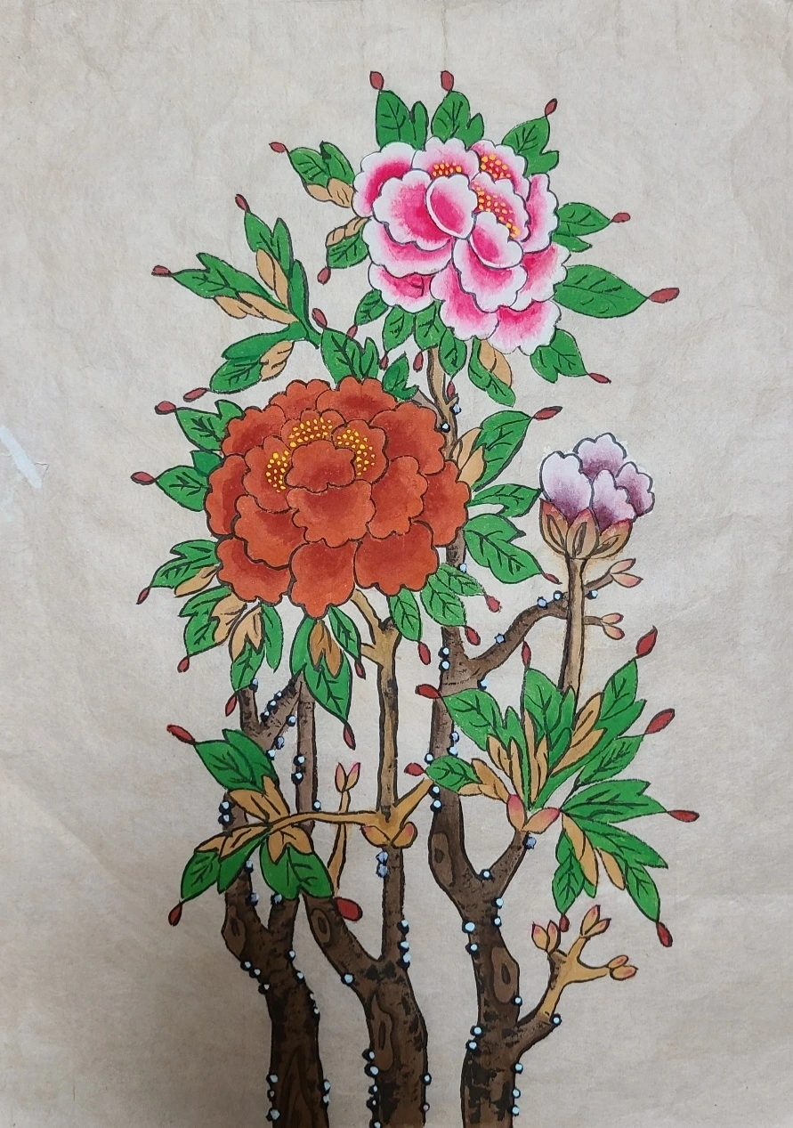 그리고 모란꽃이 시들해질 때 즈음 웨이팅을 올려놓았던 주민센터 민화반에 한자리가 나왔다는 연락이 왔다. 집에서 가깝고 수강비도 한달 2만원정도인 민화반. 나는 매주 붓을 들 기쁨에 바로 신청을 하였다. 민화는 아이가 중학교 때 은평 한옥마을에서 한번 체험을 한 적이 있는데 아이는 모란을, 나는 호랑이를 채색했다. 핸드폰보다 조금 큰 크기의 나무 조각 액자에 채색만 하는 체험이었는데도 직접 만들어서 그런지 계속 갖고 있고 또 기회가 되면 민화를 꼭 배워봐야지 관심을 가지고 있었던 터였다.