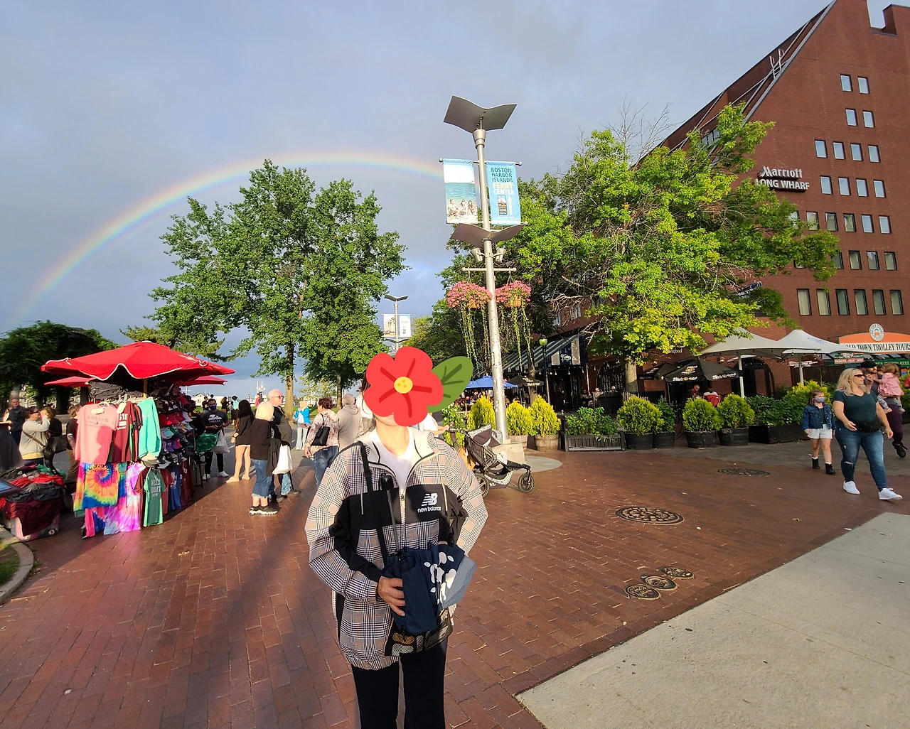 하지만 이름 때문에 맛집을 정한 것은 아니다. 아이와 3가지 보스턴 관광지를 갈 수 있는 City Pass를 산 김에 New England Aquarium에 한번 더 가보려고 5시 즈음 방문했더니 본래 오후 6시에 문을 닫지만 City Pass는 한 시간 앞선 5시에 입장 마감이라는 것이다. 아쉽지만 빠르게 발걸음을 파뇰 마켓과 퀸지 마켓으로 옮겼다. 흥미로운 가게들이 많고 음악도 연주되고 완전 축제 분위기였으나 아직도 코로나가 엄중한데 대부분 백신 접종한 사람들이 마스크도 없이 너무 모여 있는 상태가 부담스러워 바다가 보이는 카페에서 아이스크림을 먹고 귀가하는 것으로 하고 다시 항구 쪽으로 발걸음을 옮겼다. 마침 빗방울도 힛뿌려 조금씩 짜증이 나려는데 짜잔!