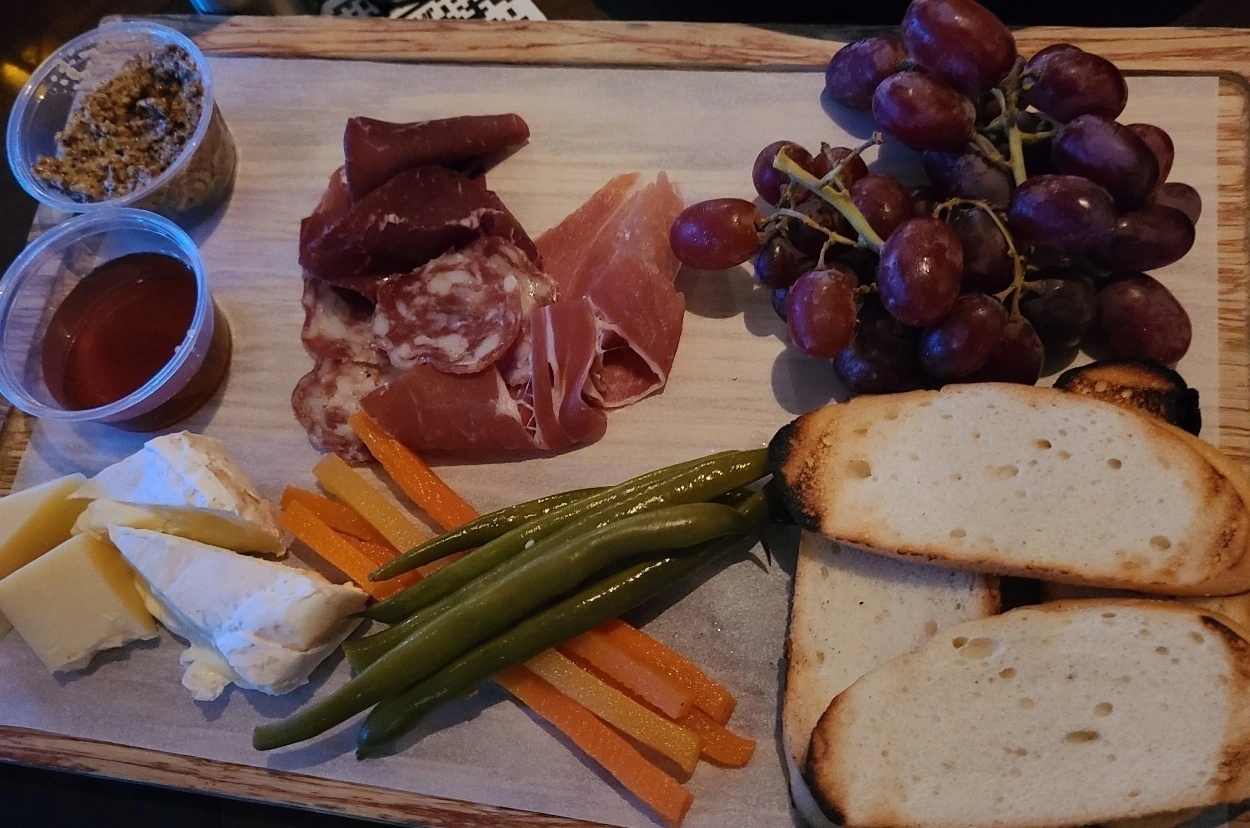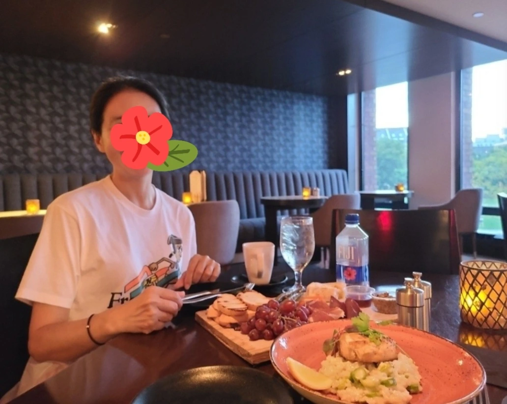 리조또는 은근히 잘 풀어지고 대파를 송송 얹어서 속을 잘 감싸주고 오늘의 생선인 황새치 Swordfish 도 비린내 하나 없이 바로 잡아서 구워서 그런지 레몬향만 그윽하고 정말 맛있다. 리조또만 먹으면 25불, 생선 추가해서 36불. 고기/치즈 플레이터는 정말 5성급 호텔답게 맛도 양도 좋았다. 브리치즈, 까망베르 치즈, 체다 치즈와 함께 살라미와 하몽이 캔디 하트 포도, 당근 피클, 꿀, 구운 바케트 빵과 나오는데 정말 깊은 단짠의 조화가 일품이다. 양도 많아서 둘이서 하나만 시켜도 될 듯. 22불