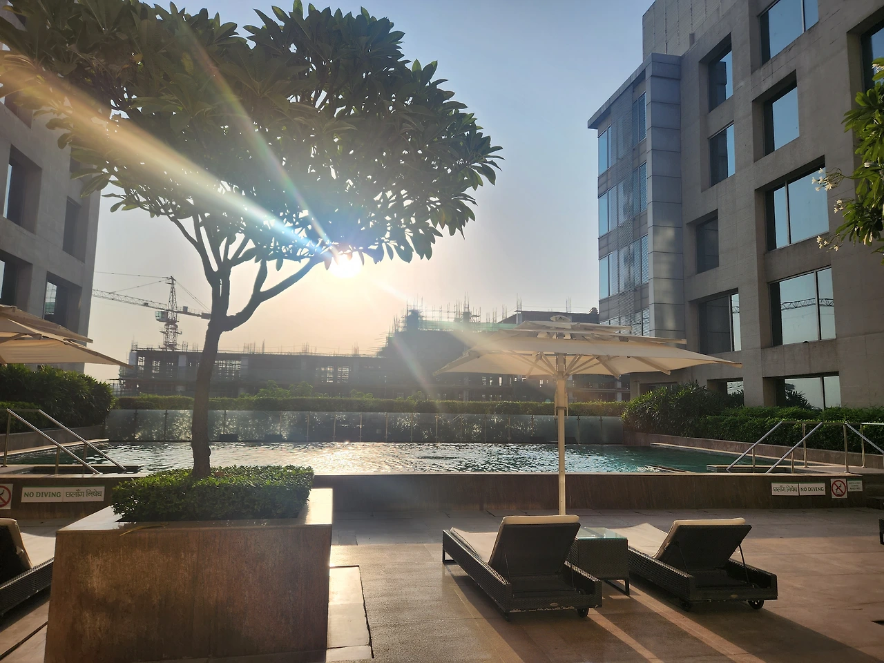 인도 신문을 읽다가 짜이를 한번 더 시켜 맛을보니 이제는 마실만함 맑아진 정신으로 야외수영장에 들려 타올 깔고 츄리닝 차림으로 스트레칭중 수영장물은 비둘기들어 옹달샘